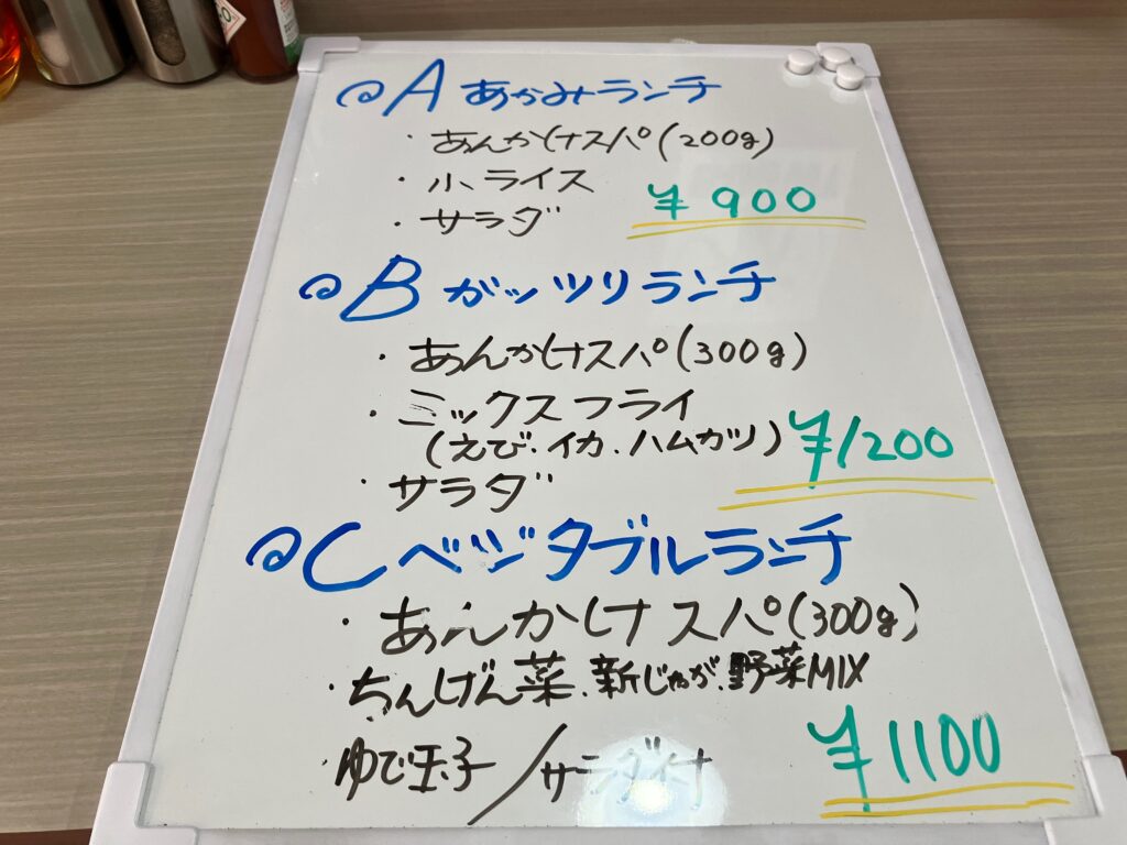 ランチタイム(11:00〜14:00)は、あんかけスパゲッティがメイン。