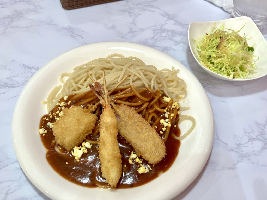 サラダも付いていて、野菜不足が気になる日にはうれしい内容でした。