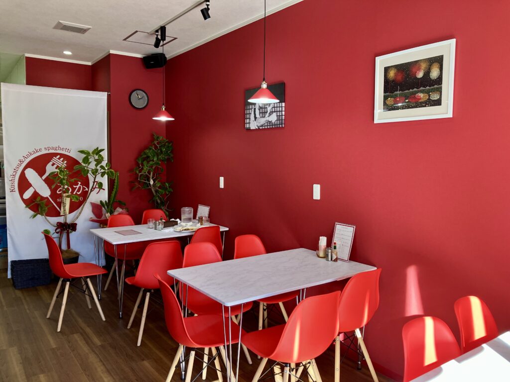 店内も外観と同じく赤を基調としたスタイリッシュな雰囲気。