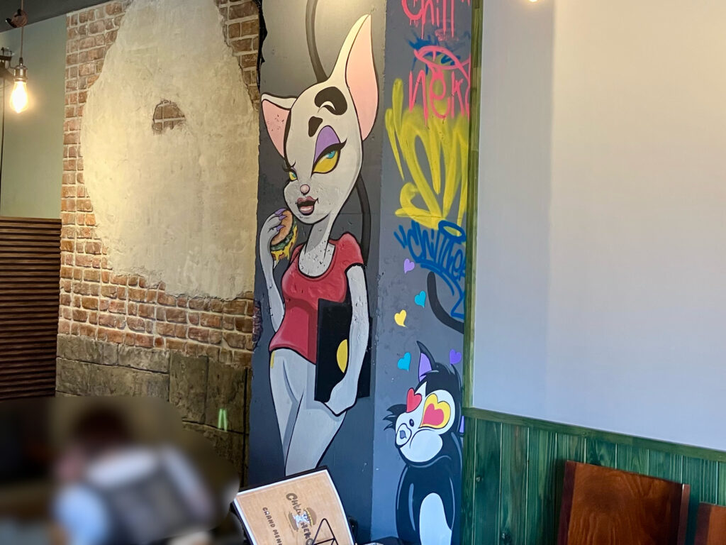 ネコのアートが印象的。気取らず落ち着けるCHILL NEKOの店内