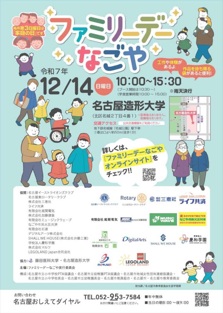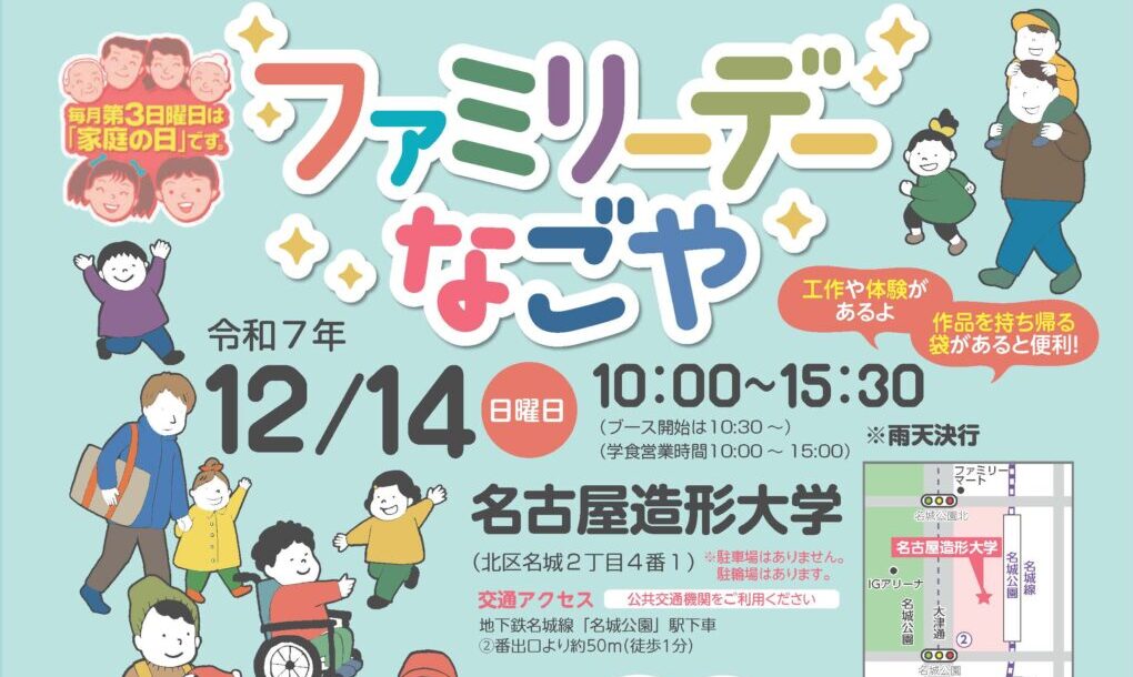 名古屋市では、家庭のあたたかさや役割を改めて見つめるきっかけとして、毎月第3日曜日を「家庭の日」と定めています。その取り組みのひとつとして開催されるのが、「ファミリーデーなごや」。