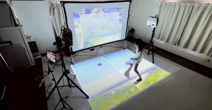 中でも、プロジェクションマッピングを使った運動療育「トレキング」は、まおの人気プログラム。