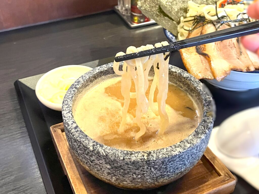濃厚なのに重すぎない。魚介豚骨スープと太麺の相性