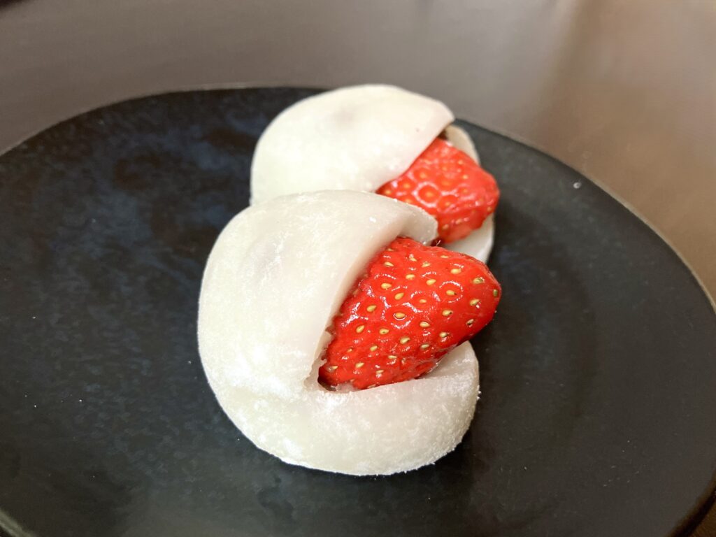 とても柔らかいお餅に包まれ、口に運ぶと、いちごの甘酸っぱさとあんこのやさしい甘みが広がります。