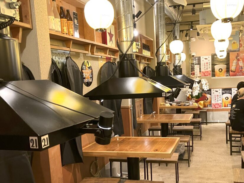 各テーブルに設置された大きな排気ダクトにはライトが付いており、煙が見えやすくなる仕掛けになっています。煙が立ちのぼる様子も、大衆焼肉らしい演出のひとつです。