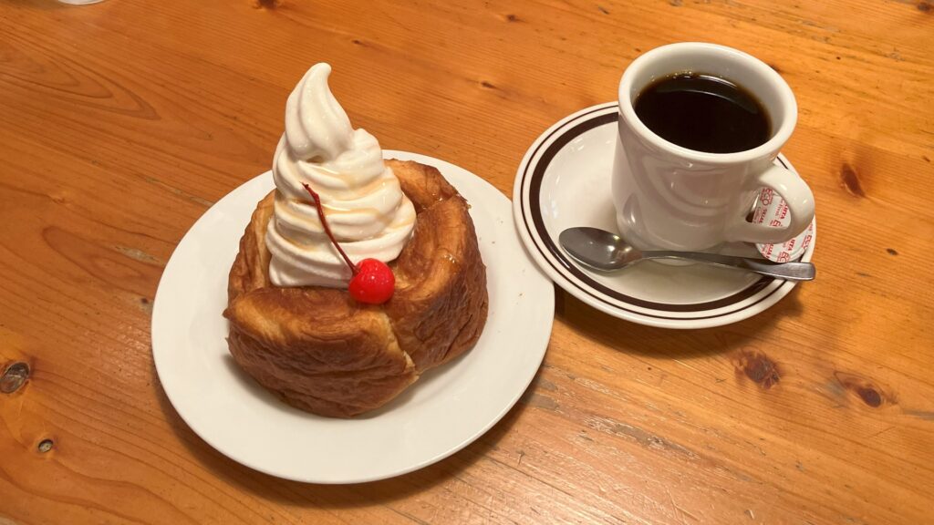 デニッシュパンの上にソフトクリームがのった見た目は、確かにシロノワールを連想させます。