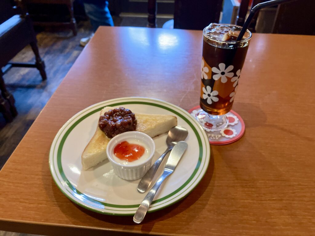 こんがり焼かれたパンにたっぷりと乗った粒あんは、名古屋の喫茶店文化を象徴するような味わいで、シンプルなのにほっと心がゆるむ一皿でした。
