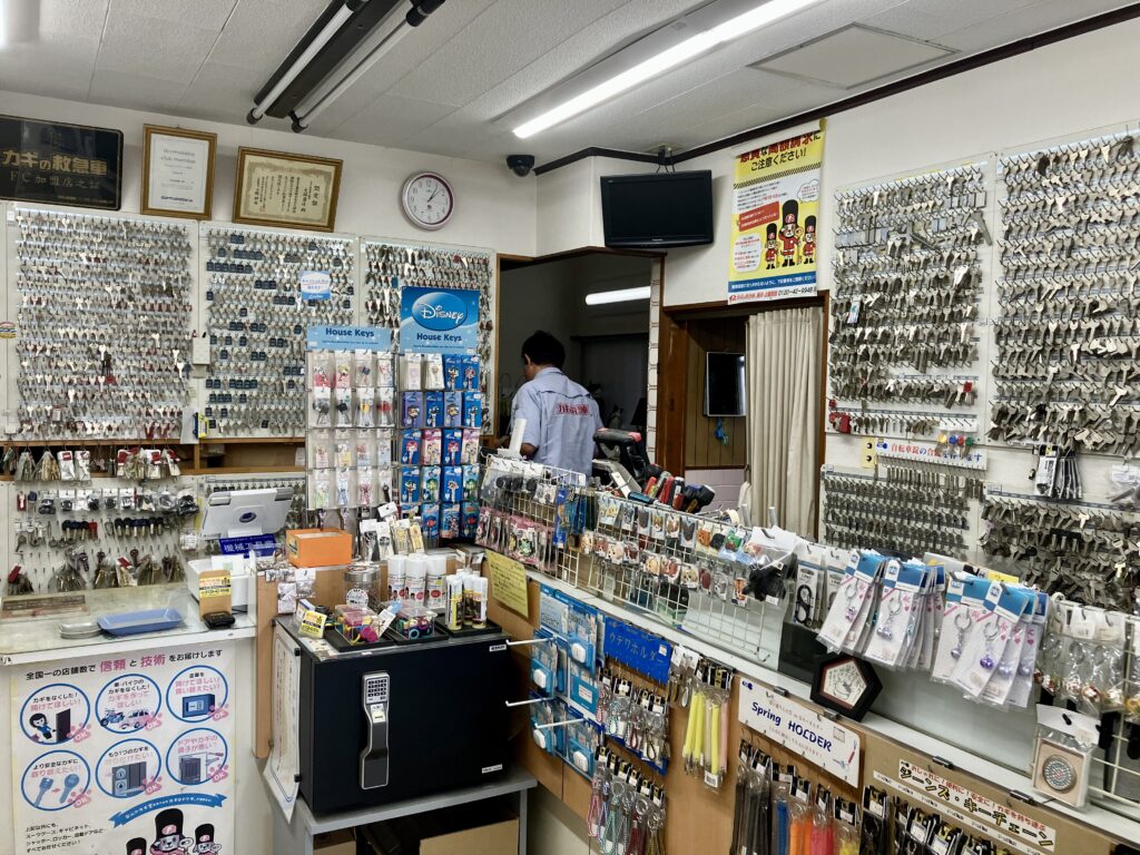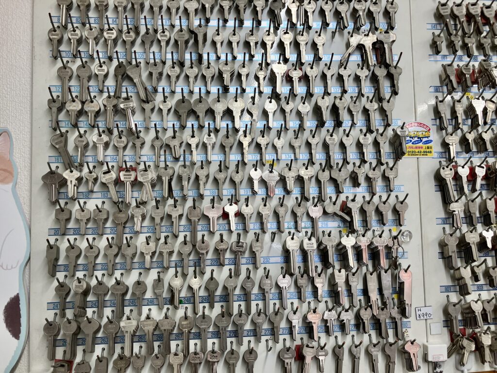 店内に入ると、壁一面にブランクキーがズラリ。その数はなんと4,000〜5,000種類!玄関や車、金庫、ロッカーなど、あらゆる鍵に対応できるそうです。