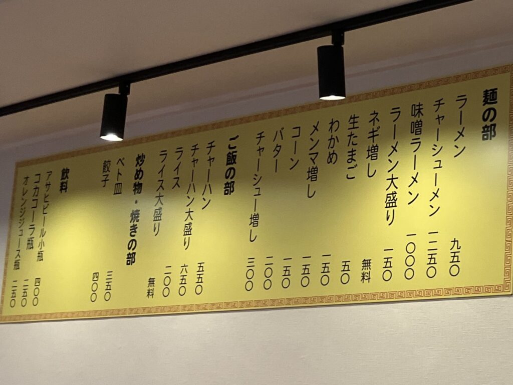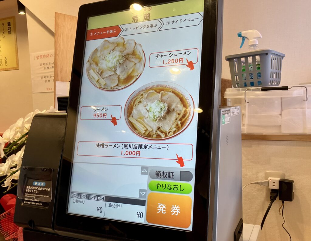 メニューは、定番のラーメンチャーシューメンに加え、黒川店限定の味噌ラーメンがあります。