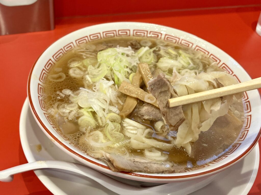 麺は、あえて不規則なちぢれを活かした平打ち麺。つるっと、もちっとした心地よい食感で、この麺がスープをしっかりと絡めとってくれます。あっさりスープでありながら、この麺の存在感のおかげで、食べ応えは満点です。