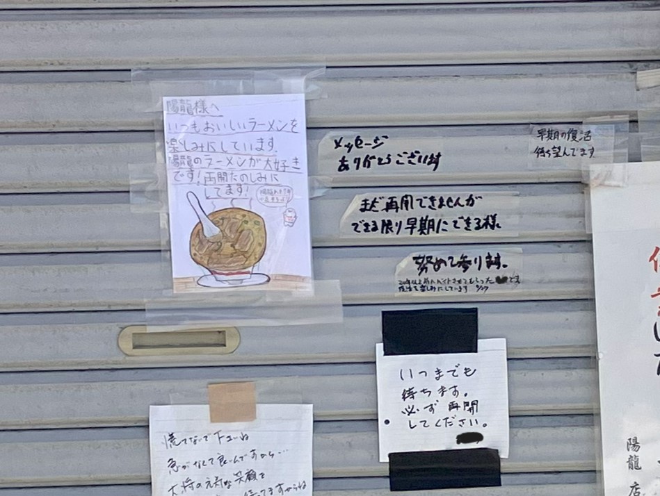 店内には、休業中に寄せられた応援メッセージの一部が今も残されています。