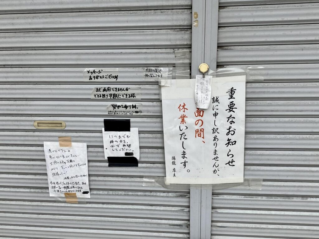 休業当初、シャッターに貼られていたのは「当面の間休業します」という一枚の貼り紙でした。