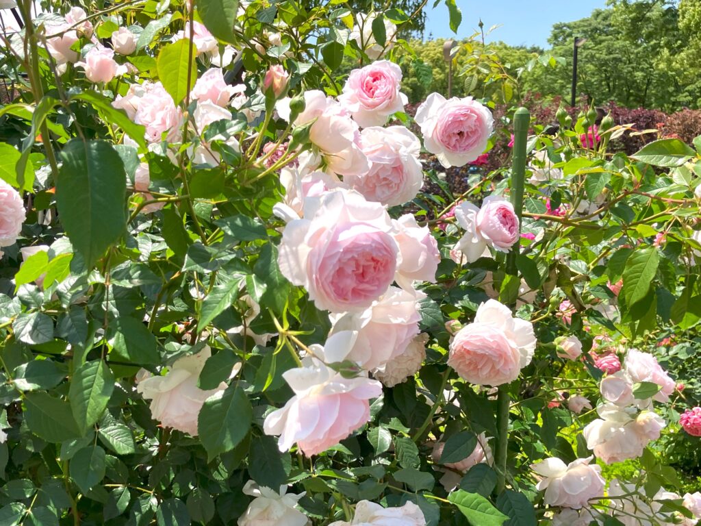 新緑のやわらかな緑に、色とりどりのバラが重なり、歩いているだけで気持ちが軽くなるような感覚がありました。