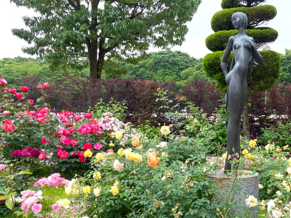 園内にあるセルジオ・カペリーニ作の彫刻「ダンスのステップ」周辺は、写真撮影スポットとしても人気です。