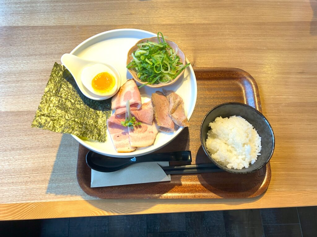 今回は、その塩ラーメンにランチタイムサービスのライスを添えて注文。