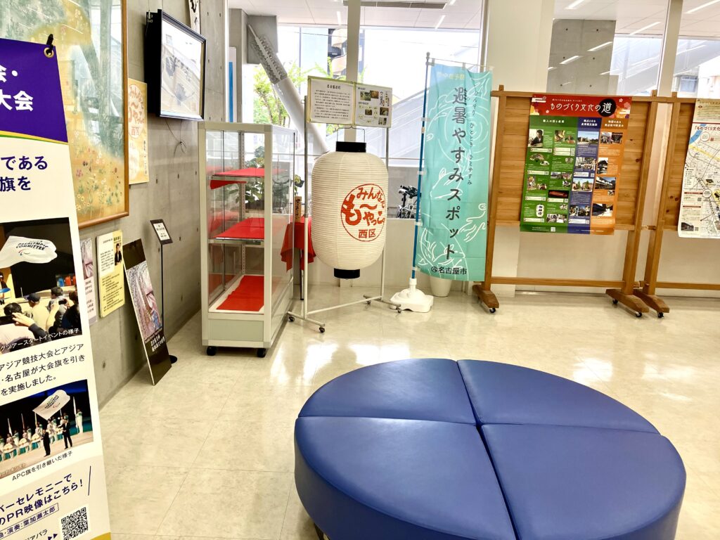 名古屋市西区では、西区役所1階ロビー「もーやっこ広場」でも避暑やすみスポットが設置されています。