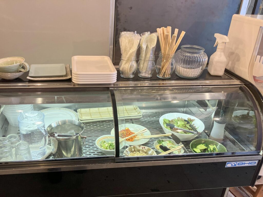 メニュー表では「サラダプレート」と表記されていましたが、実際には自分で好きな量を盛り付けられるスタイルでした。