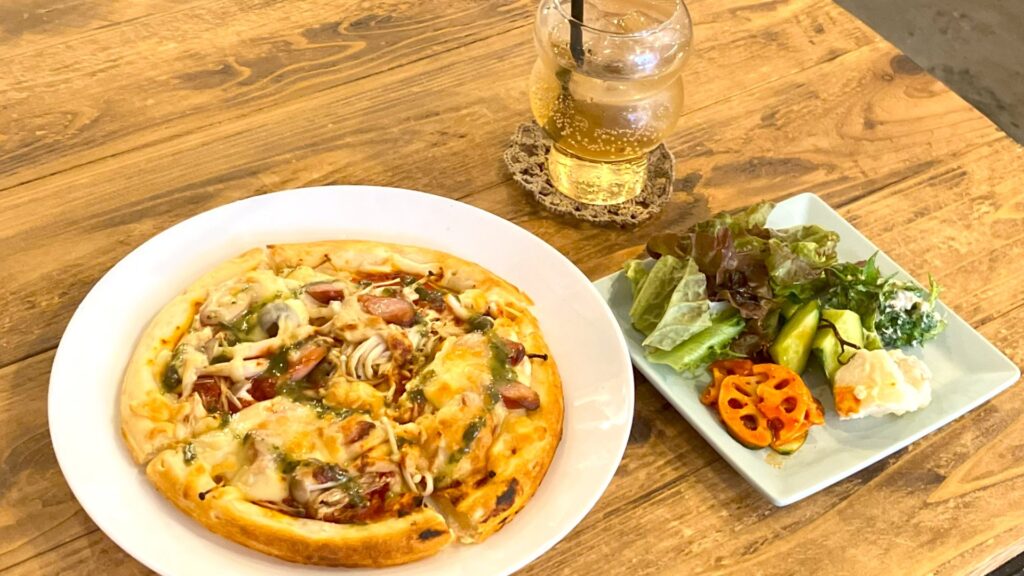 2023年11月からは、サラダビュッフェや焼きたてピザなどランチが始まり、食事を楽しめるカフェとしての利用もしやすくなりました。