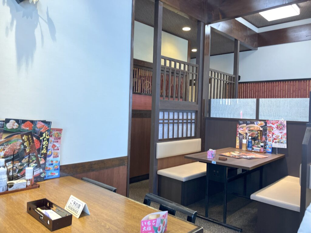 靴を脱がずに座れるテーブル席は、立ち座りがしやすく、年配の方や複数人での利用にも向いています。
