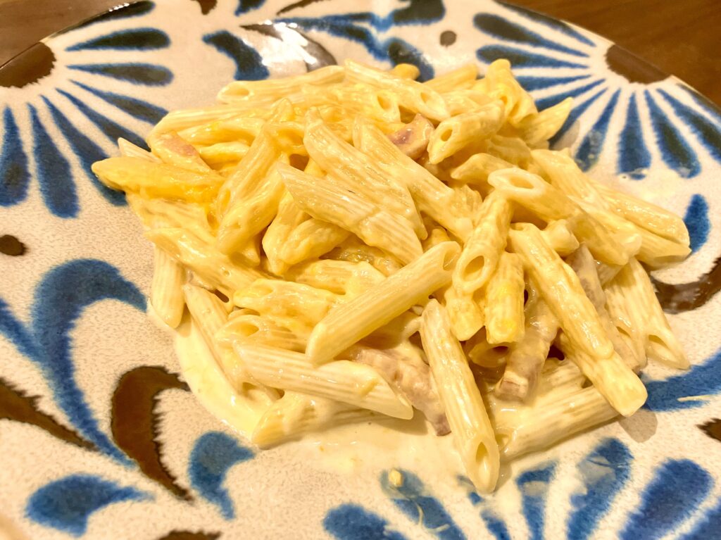 もちっとした食感のペンネにクリーミーなソースがしっかり絡み、ワインが進む一皿でした。