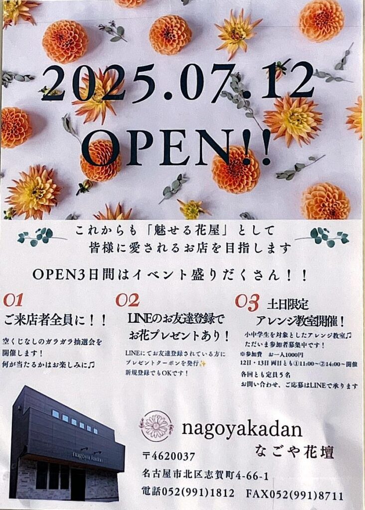 名古屋市北区・志賀町の新しい場所でも、これまでと同じように、暮らしにそっと花を添えてくれる存在として親しまれていきそうです。