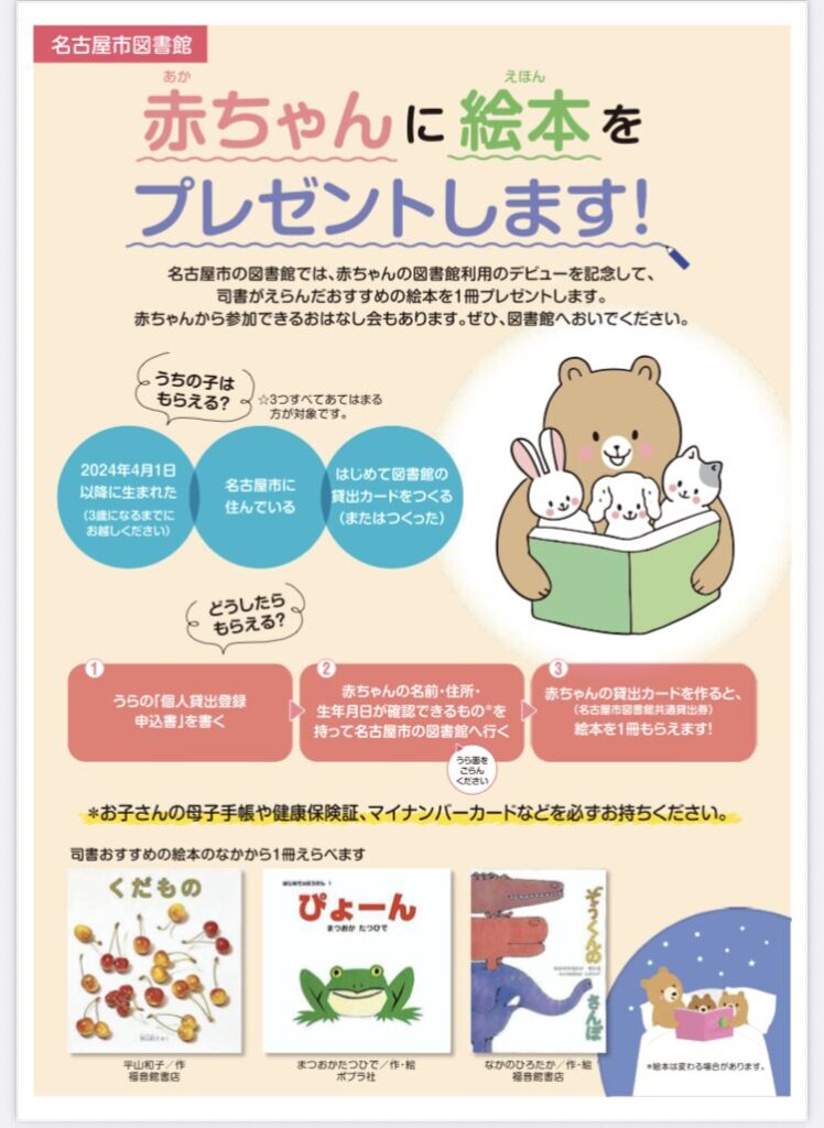 名古屋市では、令和6年8月から「赤ちゃんへの絵本プレゼント事業」がスタートしました。