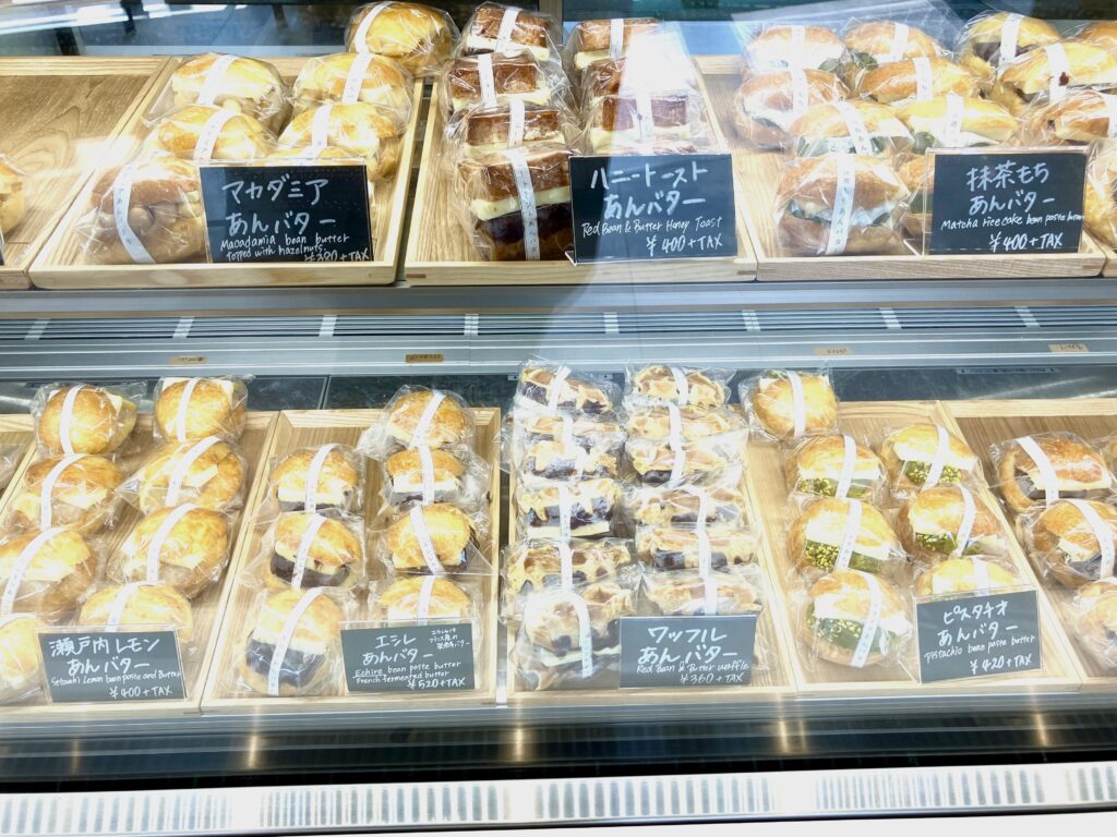定番の「あんバター」はもちろん、ピスタチオ、マカダミア、抹茶もち、さらにはエシレバターを贅沢に使ったものまで、個性豊かなあんバターたちが宝石のように輝いています。