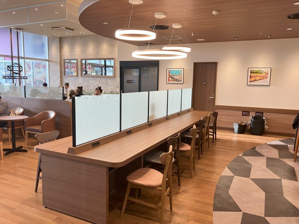 実際にノートパソコンを広げて作業されている方の姿もあり、家族連れだけでなく、学生さんやビジネスマンなど幅広い層にとって“ちょうど良い場所”になっているようでした。