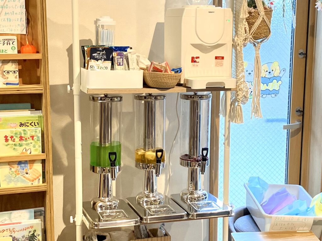 ドリンクはセミセルフ形式で大人250円、子ども150円で紙コップ一つお渡しです。