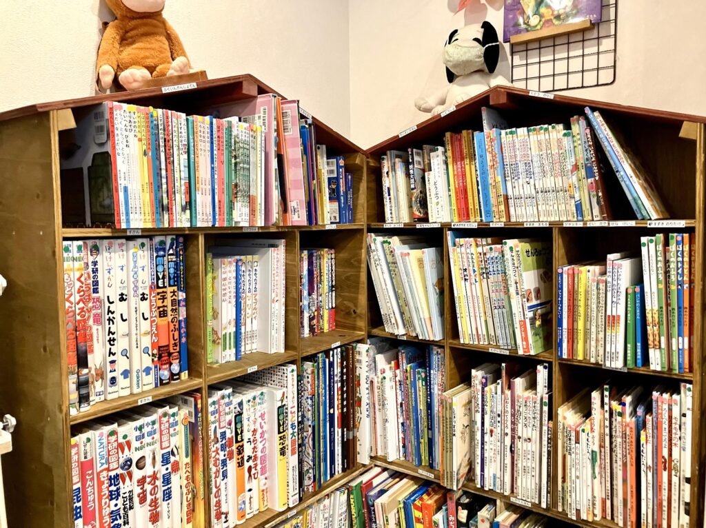店内は6坪ほどのコンパクトなスペースながら、壁際には絵本や図鑑がぎっしりと並びます。