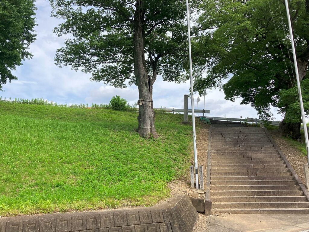 境内へ向かう途中、庄内川の堤防沿いに立つ大きなムクノキが目に入ります。しめ縄が巻かれたこの木は樹齢300年ともいわれ、車で訪れる方には目印になります。