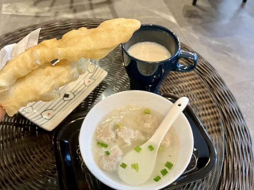 この日は、小ワンタンと中華風豆乳、揚げパン(油条)のセットをいただきました。