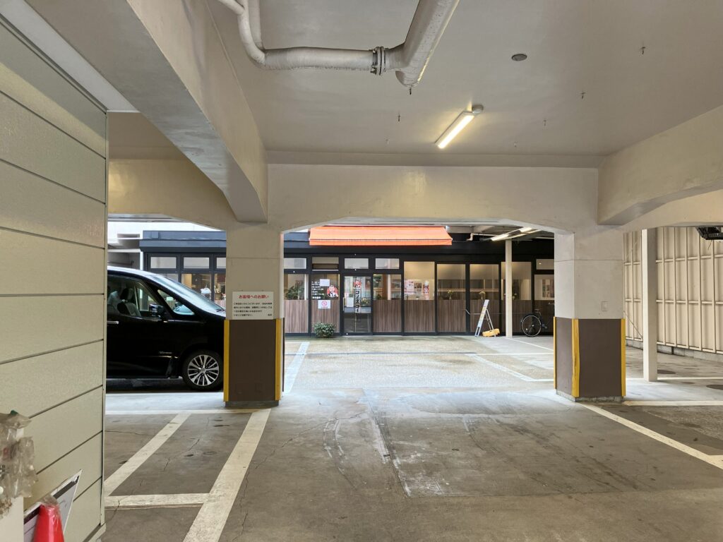 ビルの駐車場を抜けた先にあり、大通りからは店内の様子が見えにくい造りです。