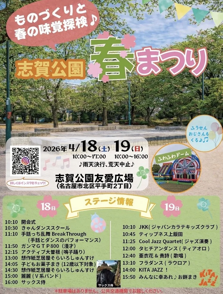 2026年4月18日(土)・19日(日)、名古屋市北区で「志賀公園 春まつり」が開催されます。