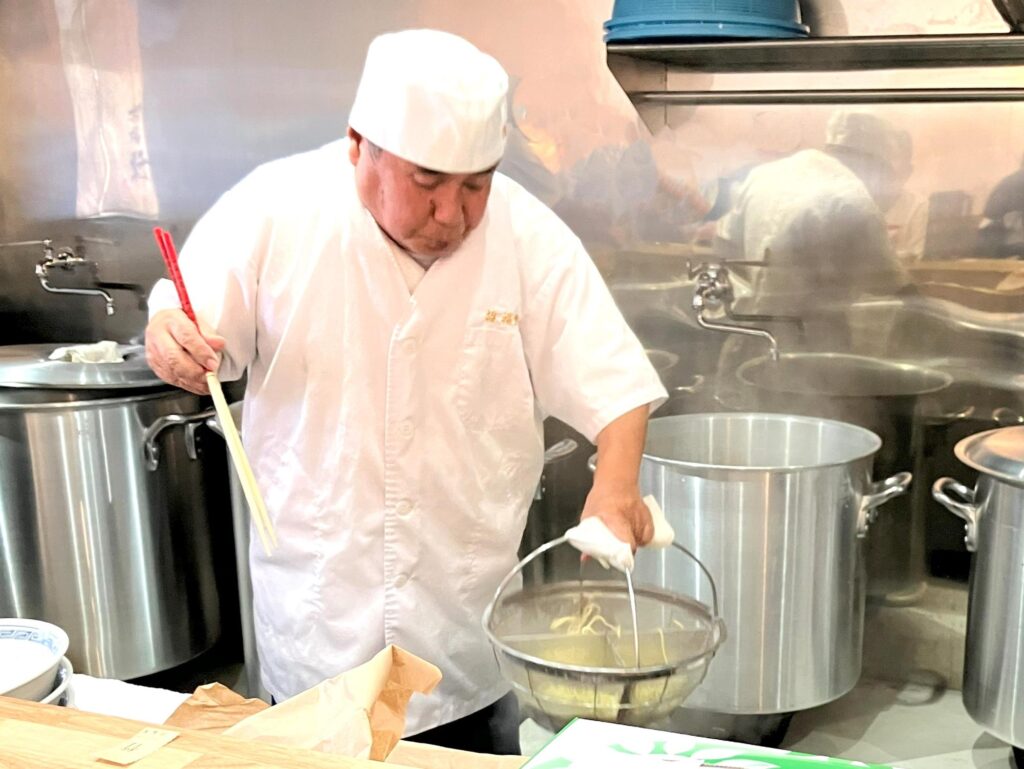 名物の湯切りも健在。待つ時間ごと味わう
