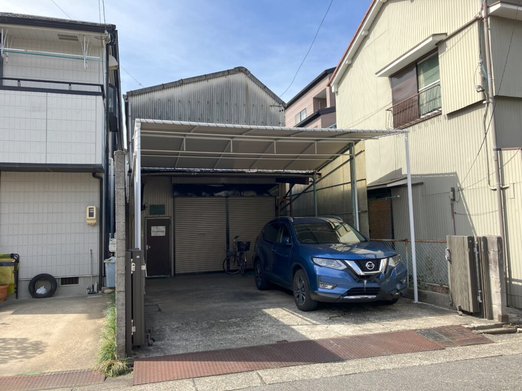 倉庫を改装した建物で、道路沿いに大きな看板はなく、駐車場の奥まった場所に入口があります。