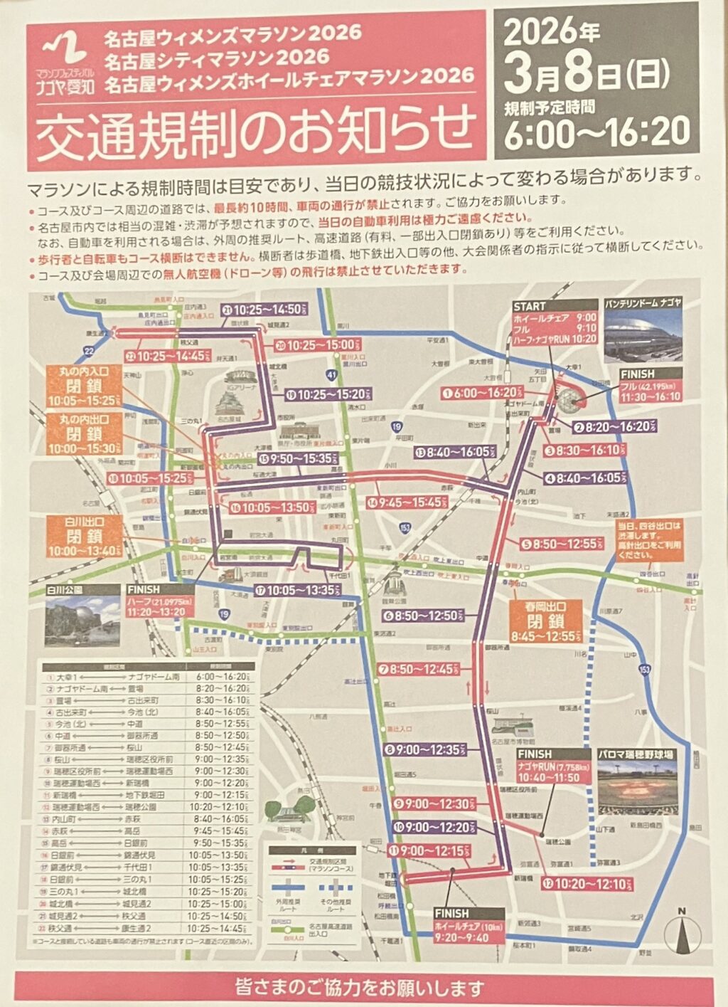 【名古屋市北区・西区でも交通規制】2026年3月8日開催の名古屋ウィメンズマラソンに伴う影響まとめ