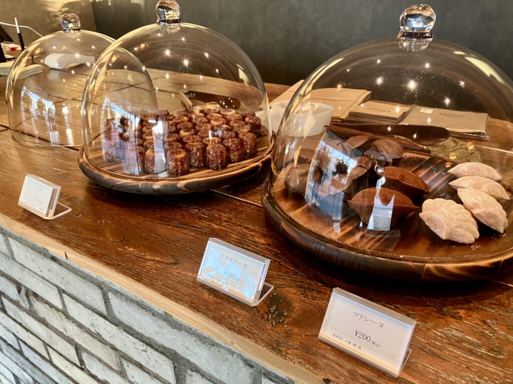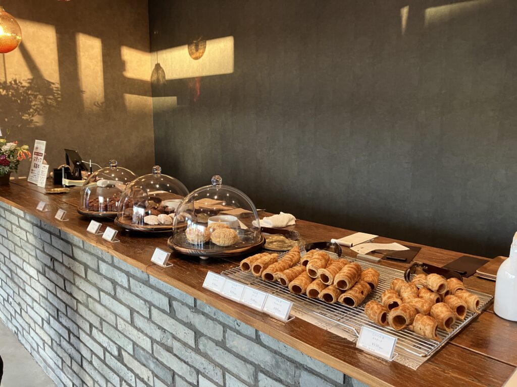 カウンターには、コルネをはじめ、ドーナツ、カヌレ、マドレーヌなどがずらりと並び、焼き菓子の香ばしい香りがふわりと漂います。