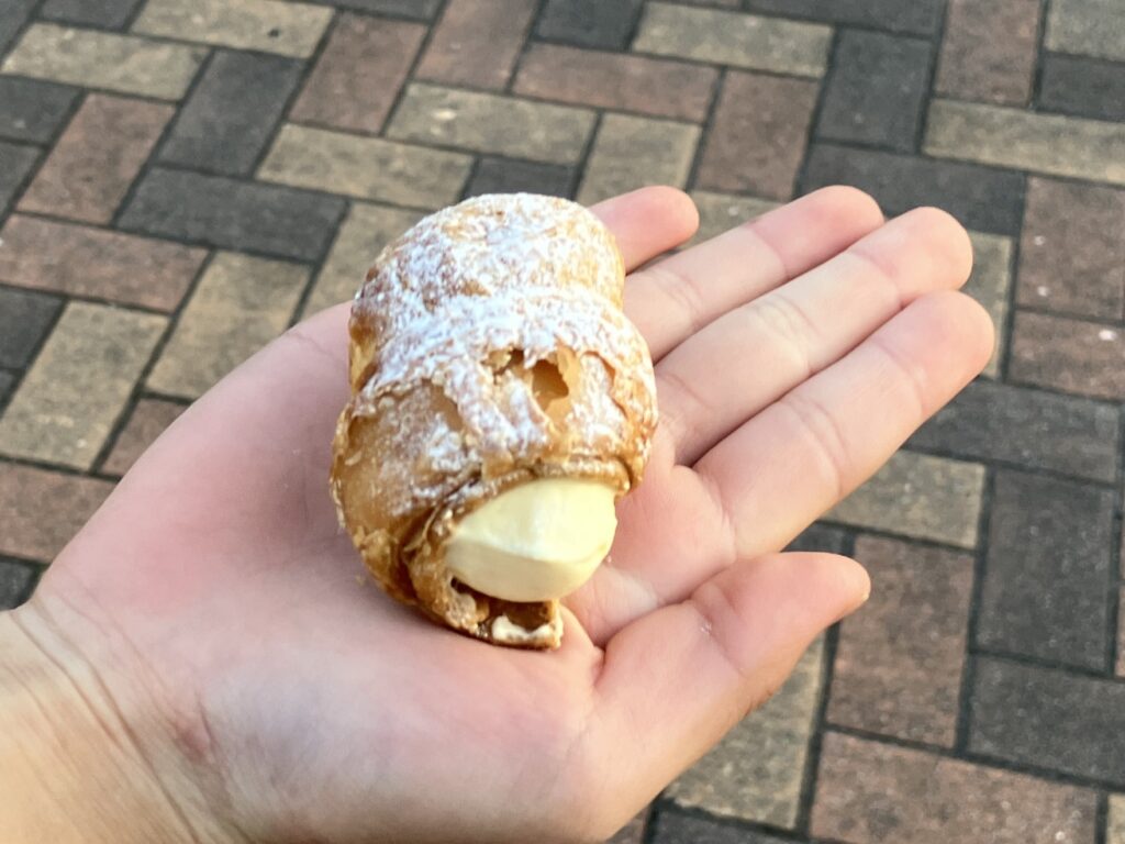 注文を受けてからクリームを詰めるスタイルなので、パイのサクサク感が損なわれないのが嬉しいところ。